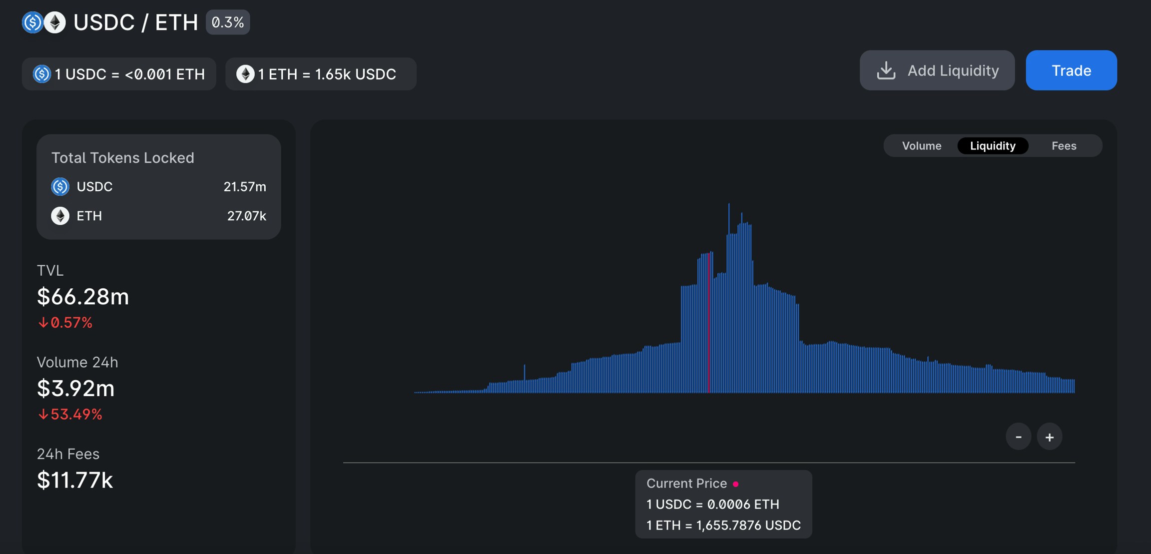 current_price_0_1 | Current tick price (token0/token1) based on last swap. | 1,658.94 |