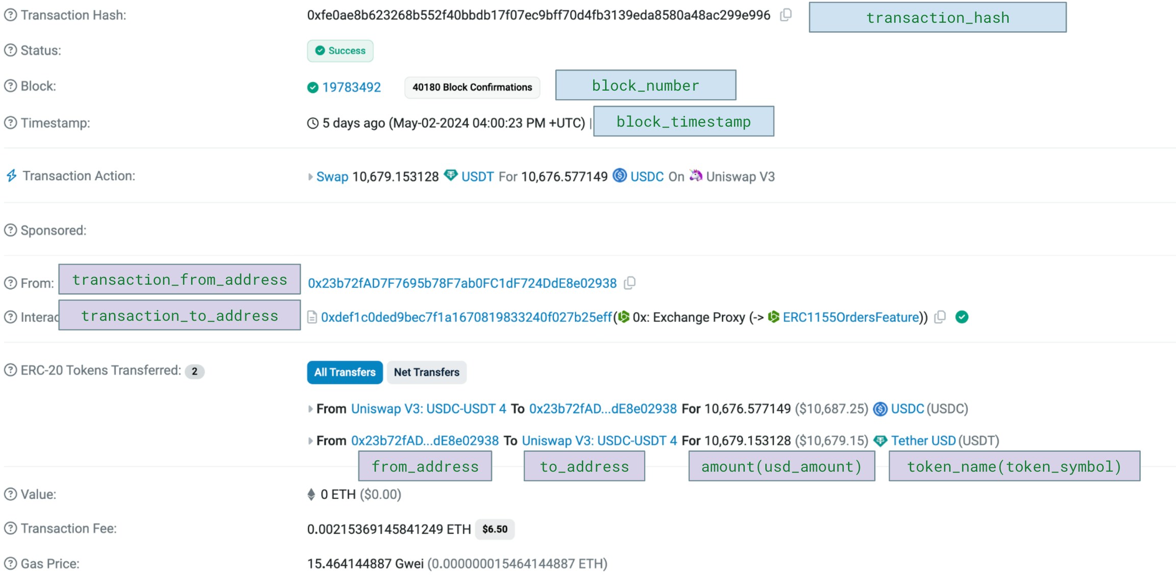 transaction_hash | Transaction hash of the transfers. |